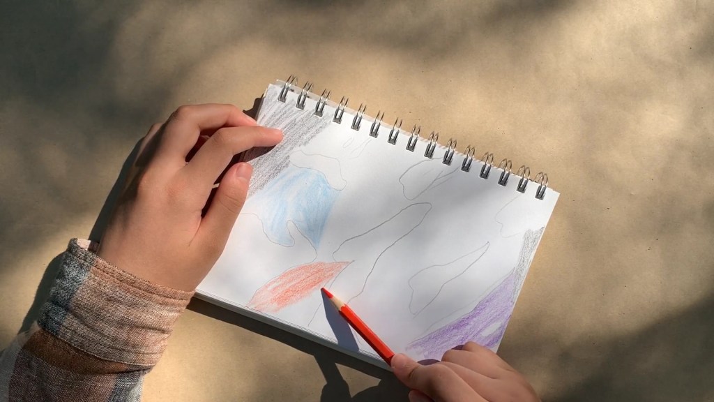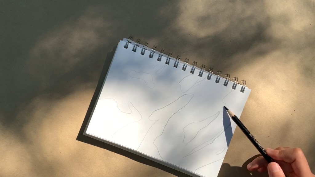 You can draw and paint the shadows of trees on paper with watercolour pencils.