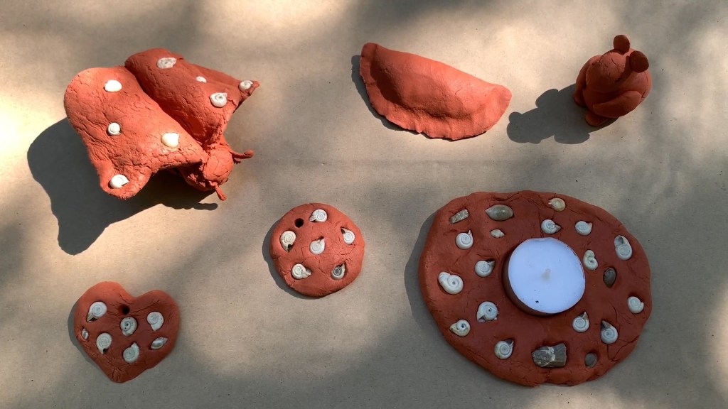 You can make pretty candle holders or a pendant by shaping it out with clay and sticking shells in it.