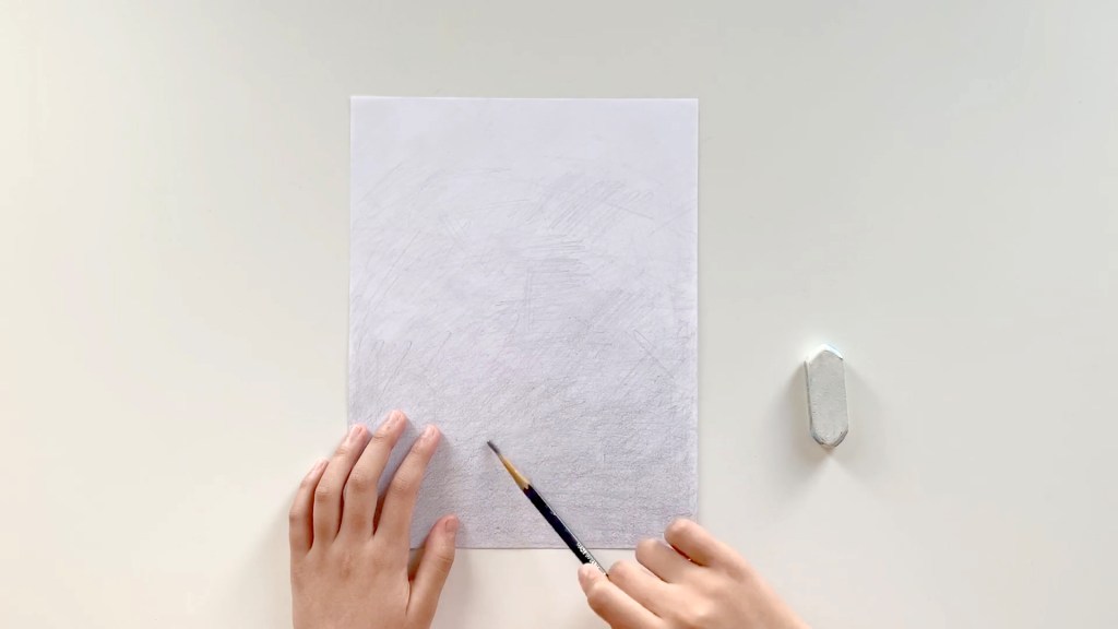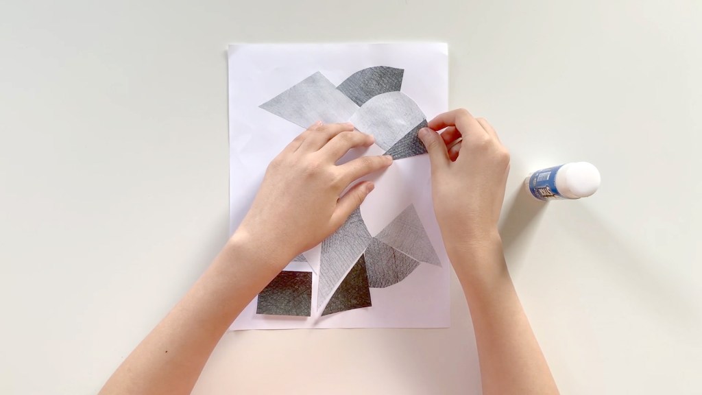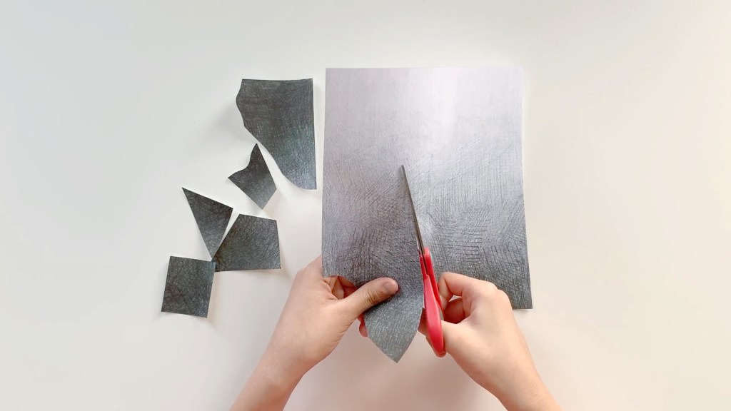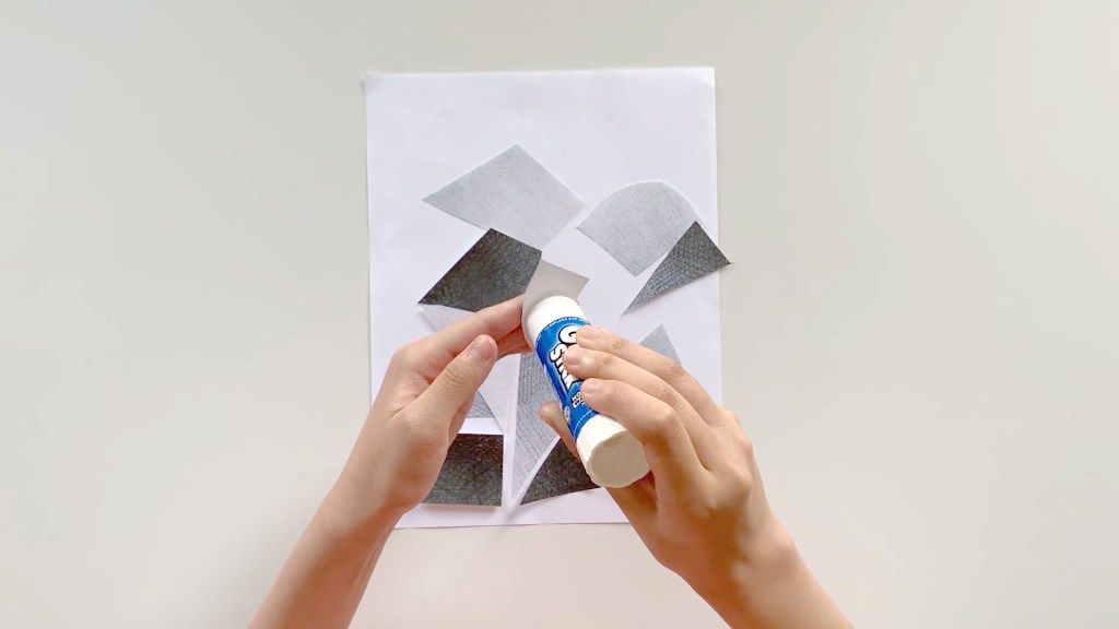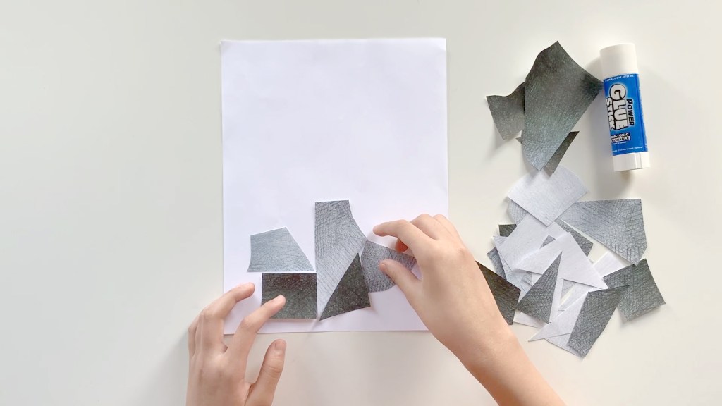 two pieces of white paper / pencil (I recommend 4B.) / eraser / scissors / glue stick