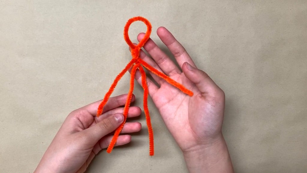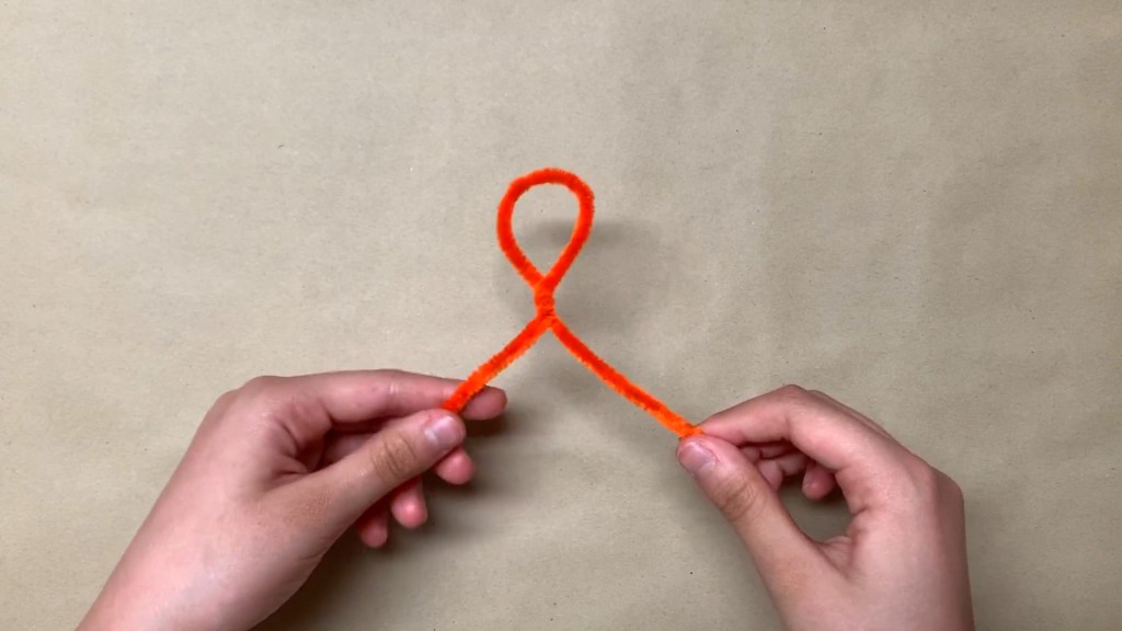 Make a loop in the middle of the first pipe cleaner. This is going to be the head. The rest of the pipe cleaner is going to be the arms.