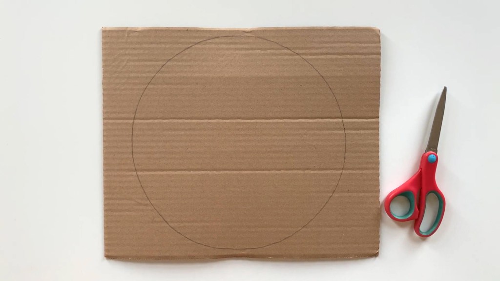 pencil / black marker / scissors / painting materials / small hole puncher / plastic bag / recycled cardboard box