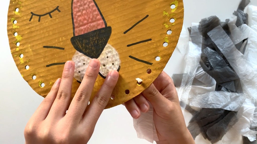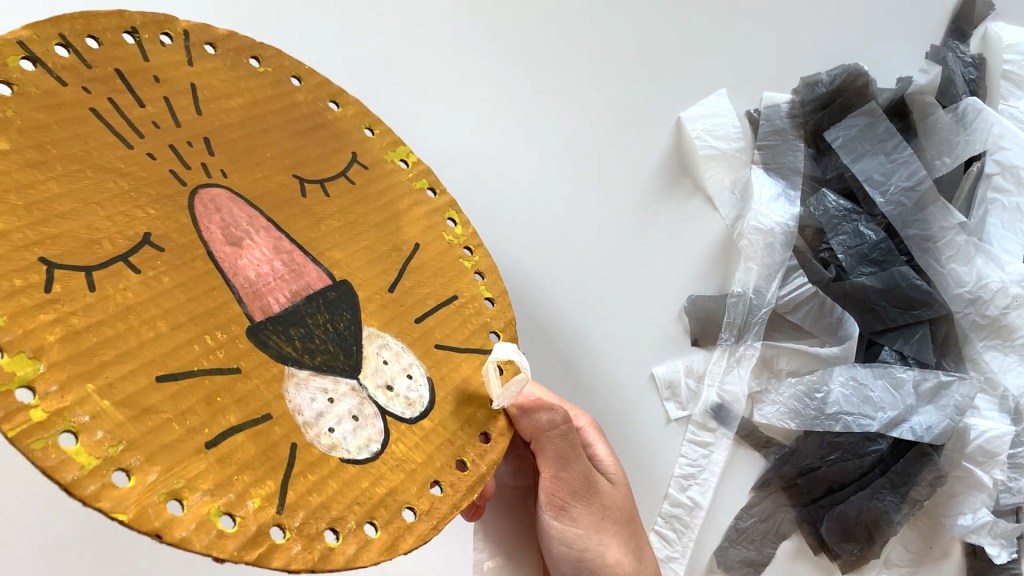 Let’s Make A Lion Out Of A Recycled Cardboard Box And A Plastic Bag!