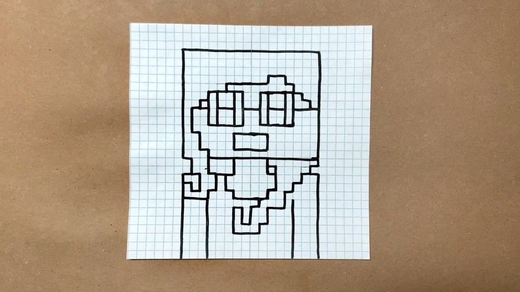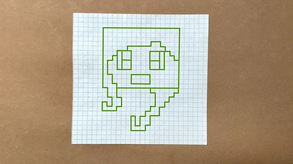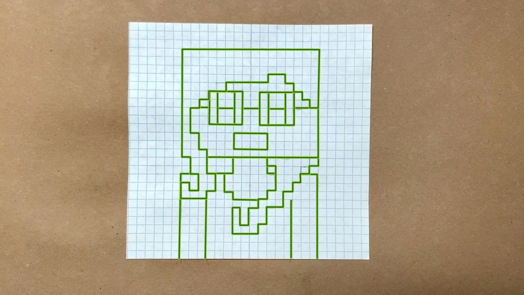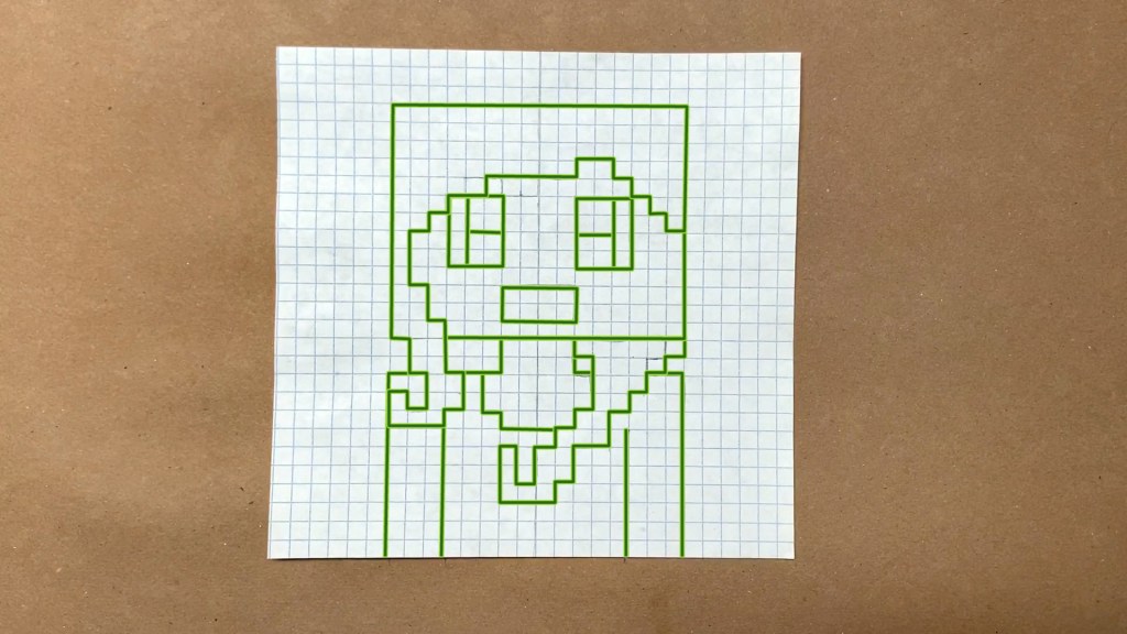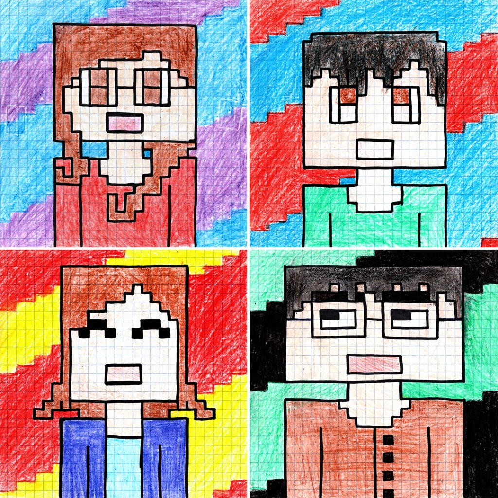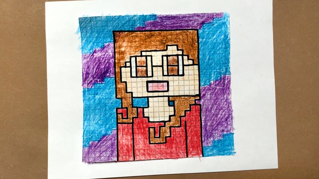 grid paper / pencil / eraser / black marker / crayons or colored pencils