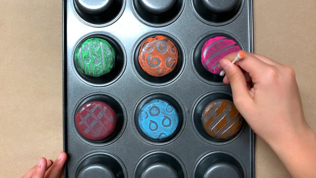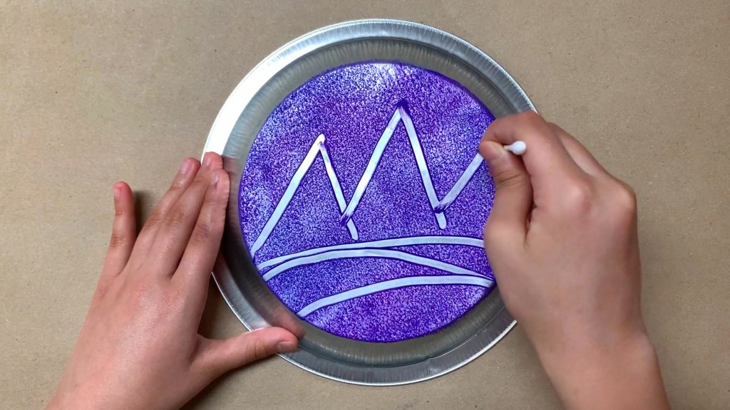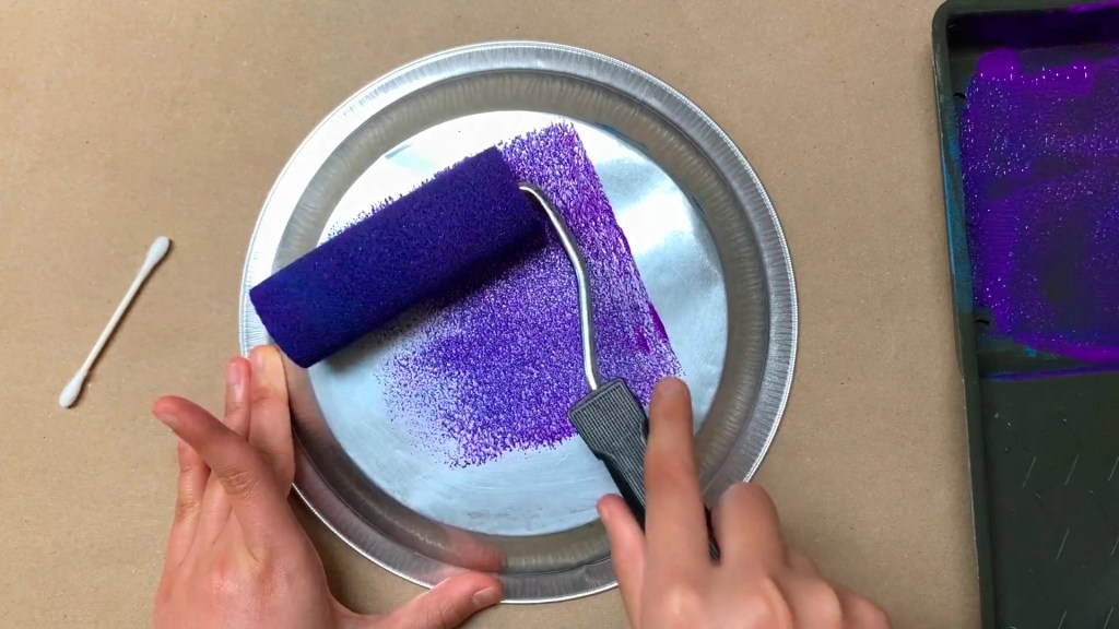 bottom of a baking pan or a muffin tin / mini paint rollers or foam brushes / paint / Q-tips / white paper