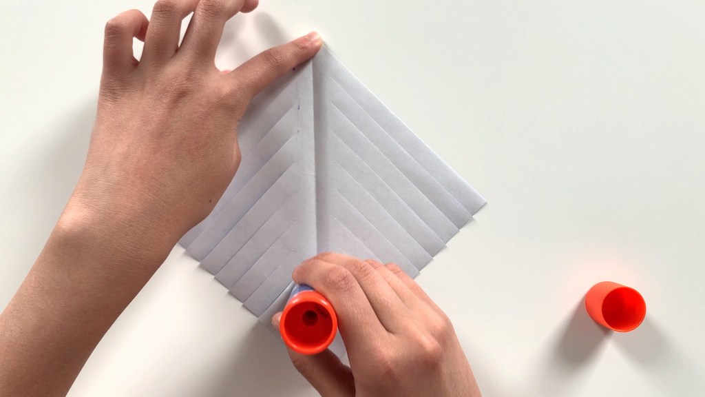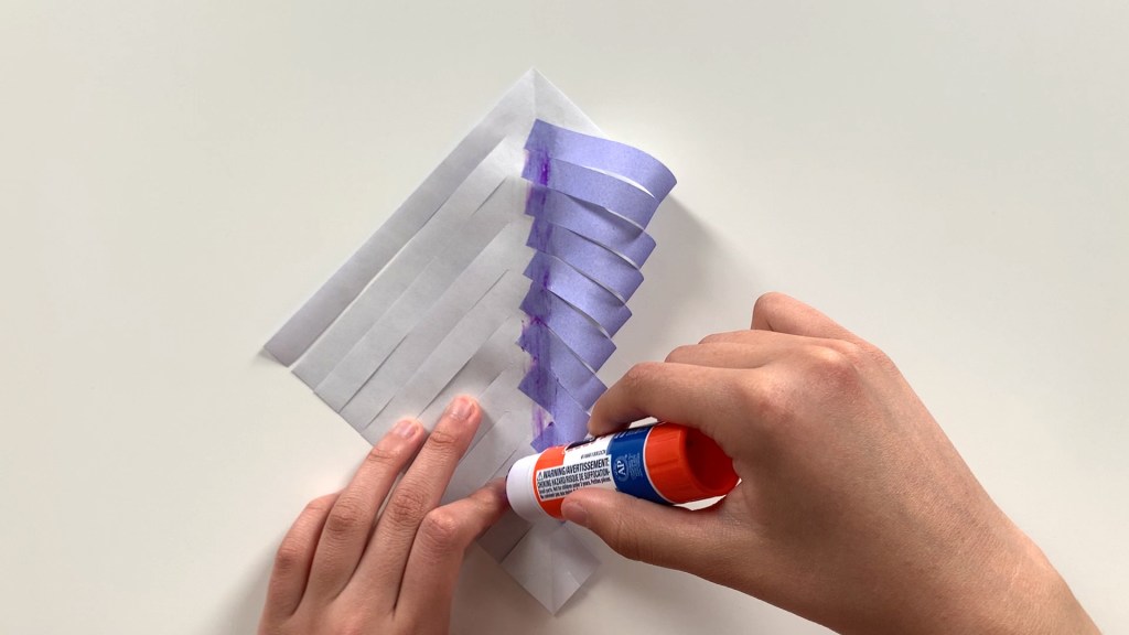Glue the cut end of the paper to the center.