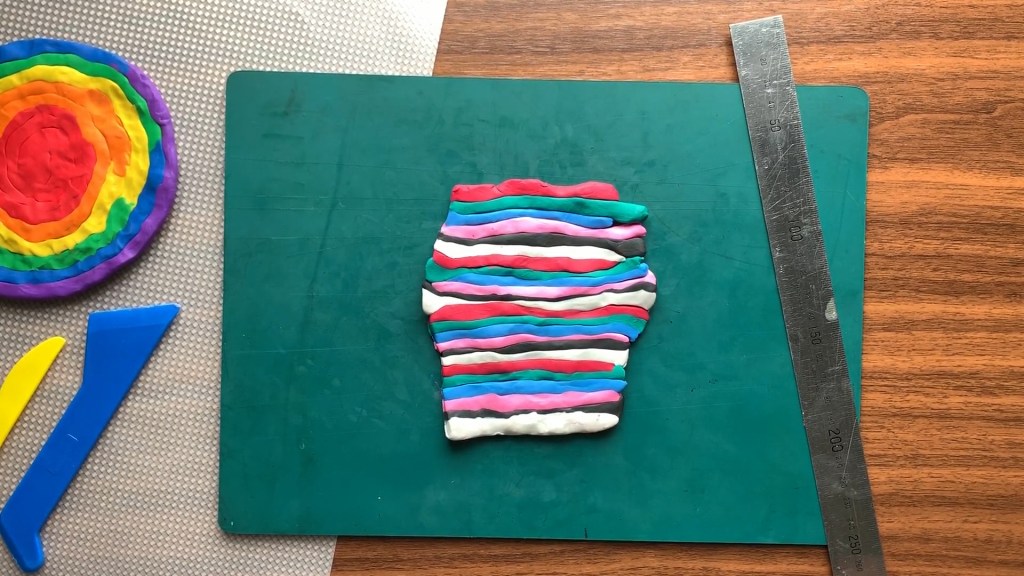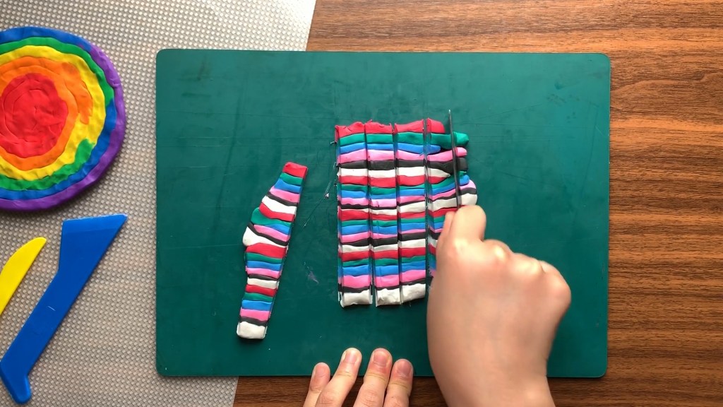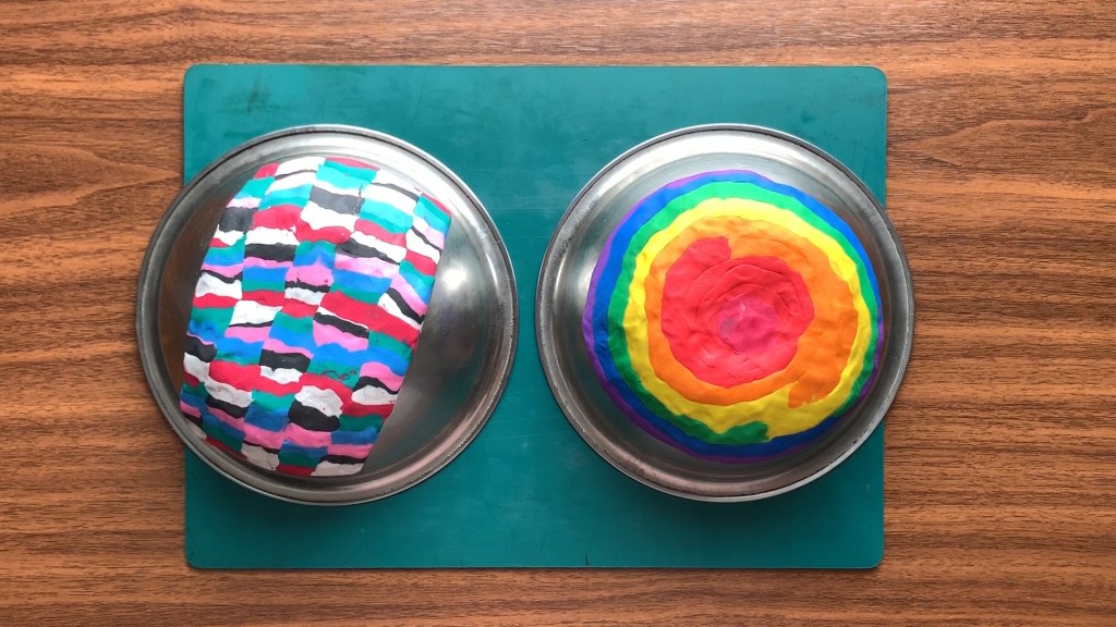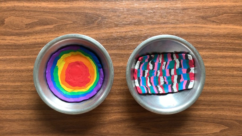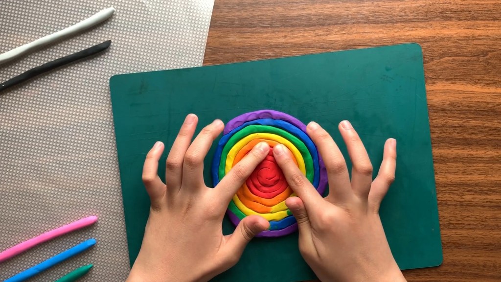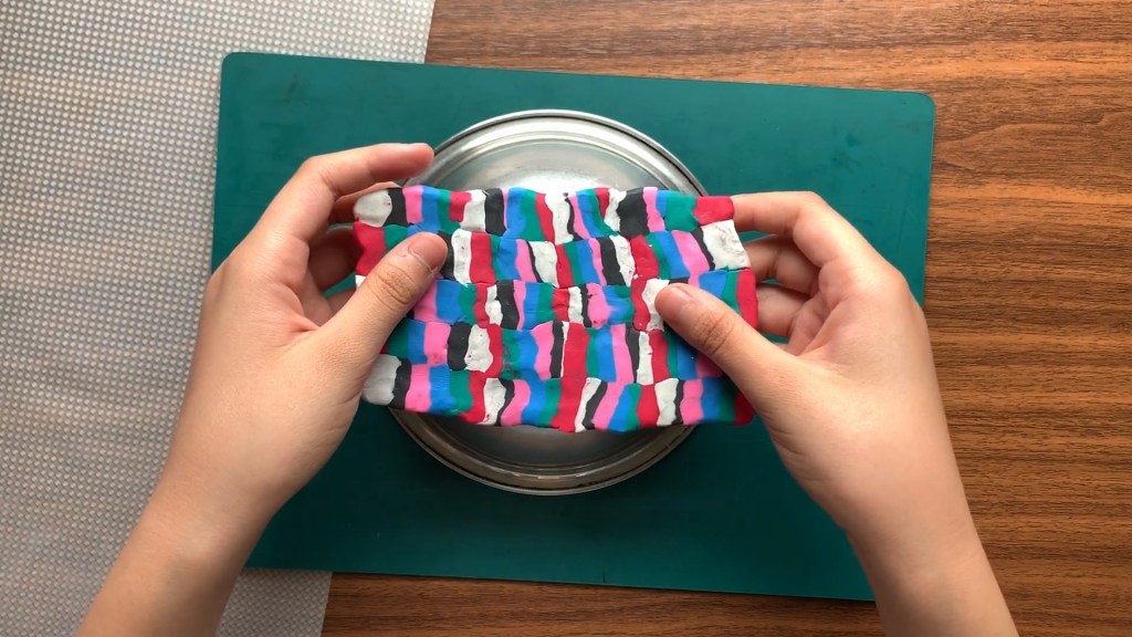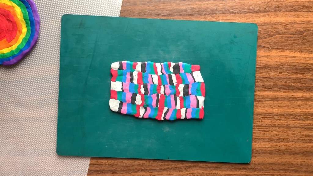 Play-Doh Plate The Supplies You Will Need Play-Doh / ruler(carving tool) / round bowl / nonstick surface How To Make A Play-Doh Plate Roll the play-doh to create a long string. Roll it into a spiral shape and continue making them. Press it together so that they stick to each other. This time, put the long strings side by side and press them together so that they stick to each other. Then cut them into long strips with a ruler. Flip every other strip so that it looks like a mosaic. Press them lightly once again. Put the plate over a round bowl or press it into the bowl to create a curvy plate. Let it dry for one week. Once they are dried, take them off. If you put on another layer, you can make it stronger. The play-doh plates became curved! Watch The Video Tutorial Here! Share this: Click to share on Pinterest (Opens in new window) Pinterest