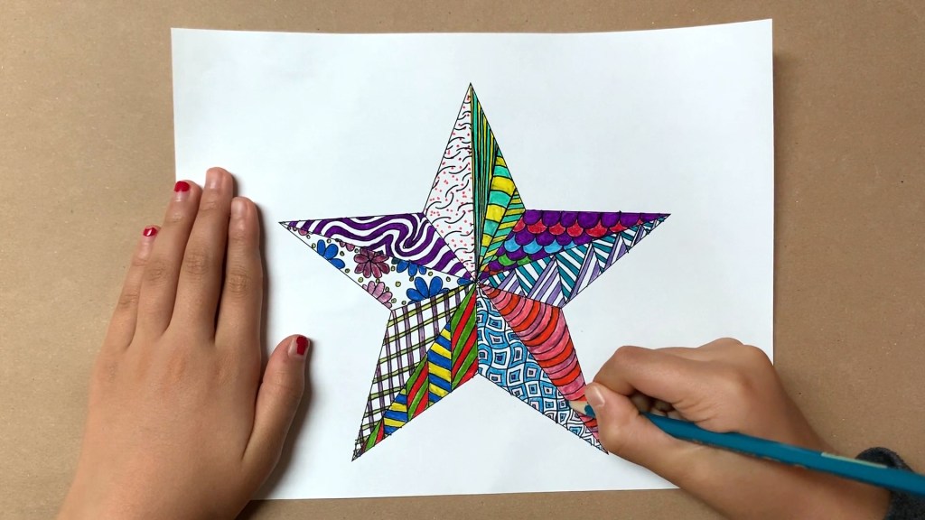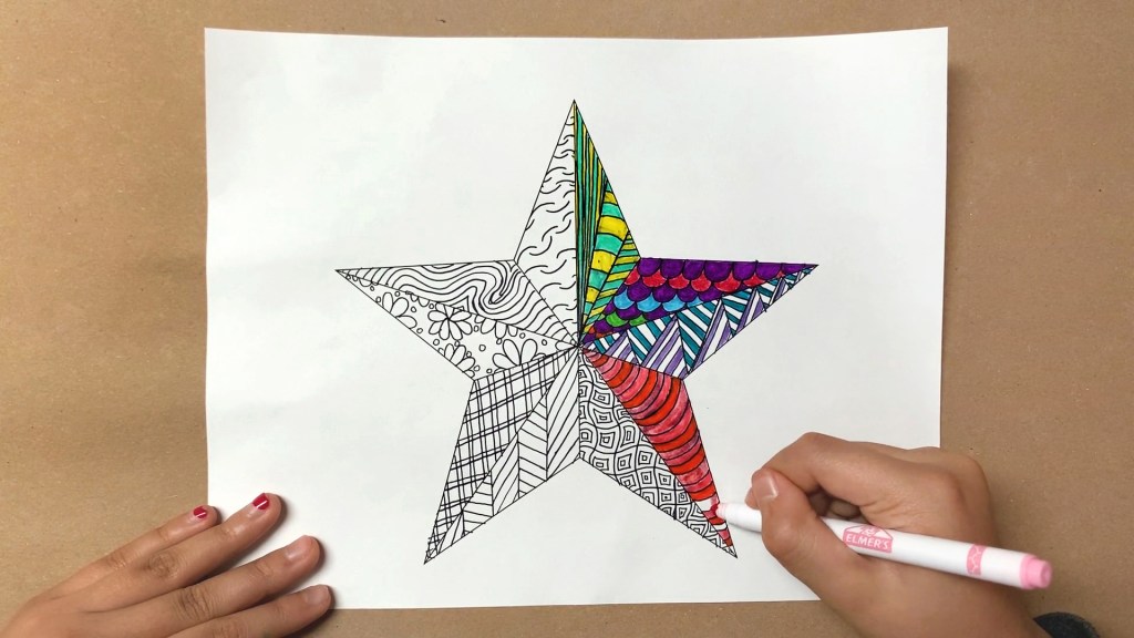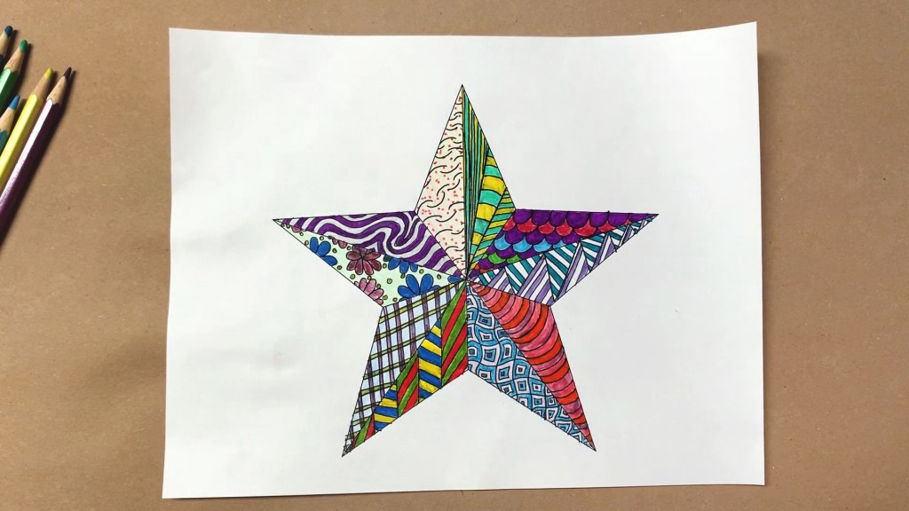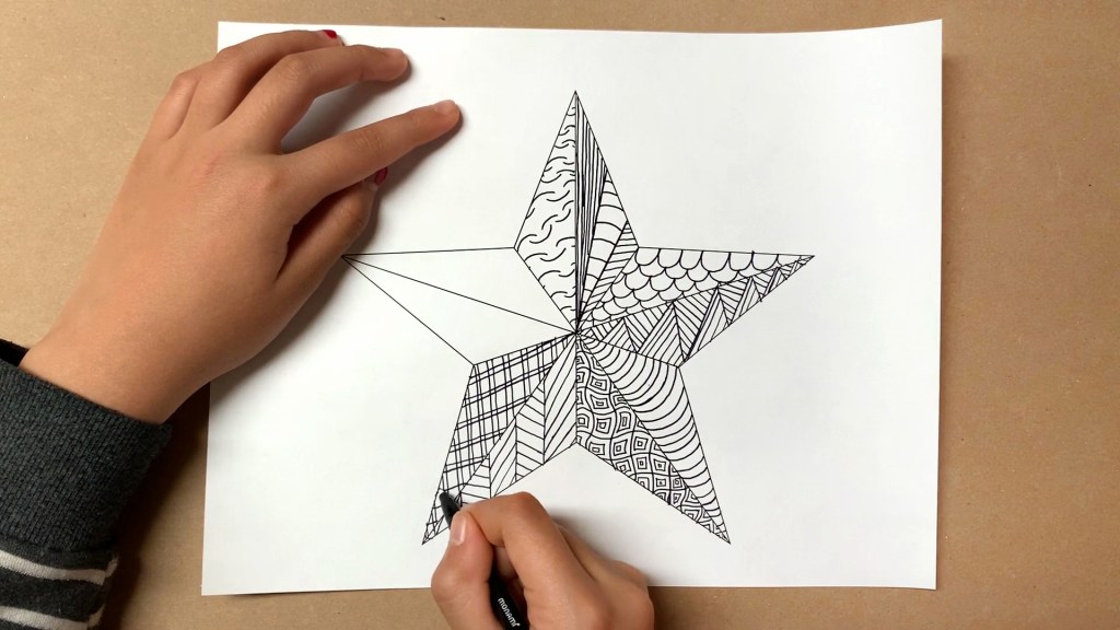Zentangle is a compound word of zen and tangle. It is an easy-to-learn and fun way to create a work of art by drawing repeated lines. When you focus on it, you will have no worries and thoughts and feel relaxed. With just white paper and black pen, you can create interesting tangles with combinations of repeated lines. You can also color it if you want. Let’s decorate the star with your own patterns!